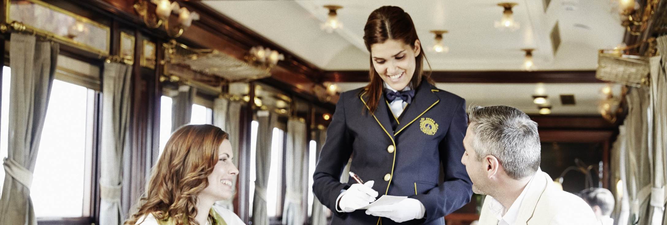 El almuerzo y la cena son una combinación de comidas a bordo y comidas en restaurantes de primera clase. En cualquier caso, hay una selección de cocina de alta calidad que se ofrece, con platos típicos de las zonas por las que tren circula.
